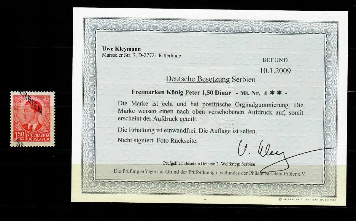 Serbien MiNr. 4, Aufdruck verschoben, postfrisch,** BPP Befund