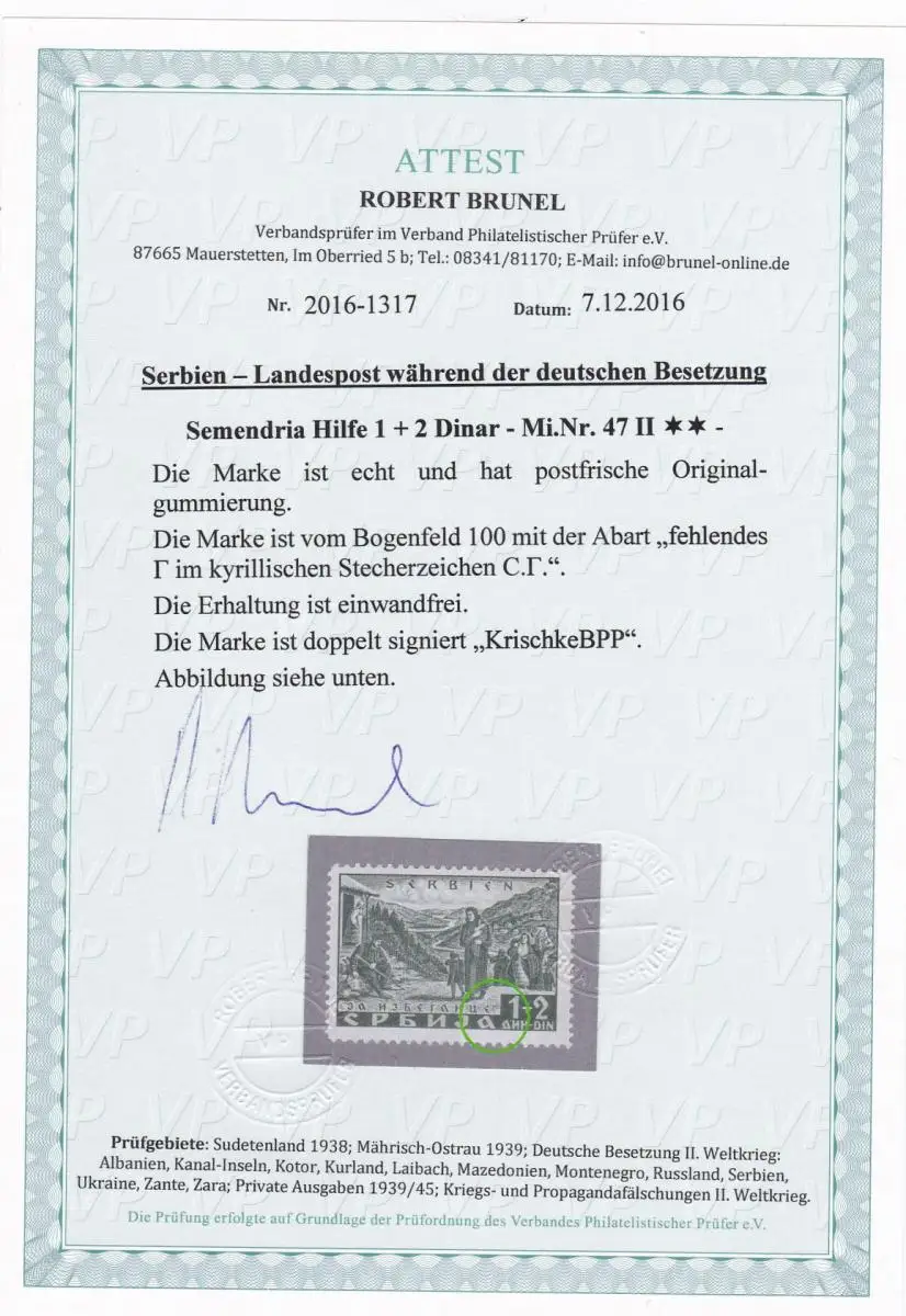 Serbien: MiNr. 47 II, postfrisch, Abart