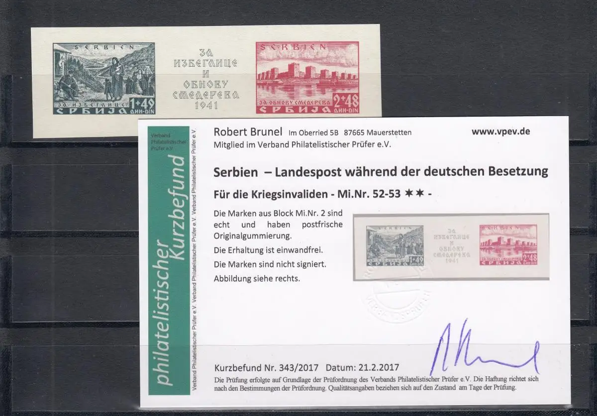 Serbien: MiNr. 52-53, postfrisch, Marken aus Block