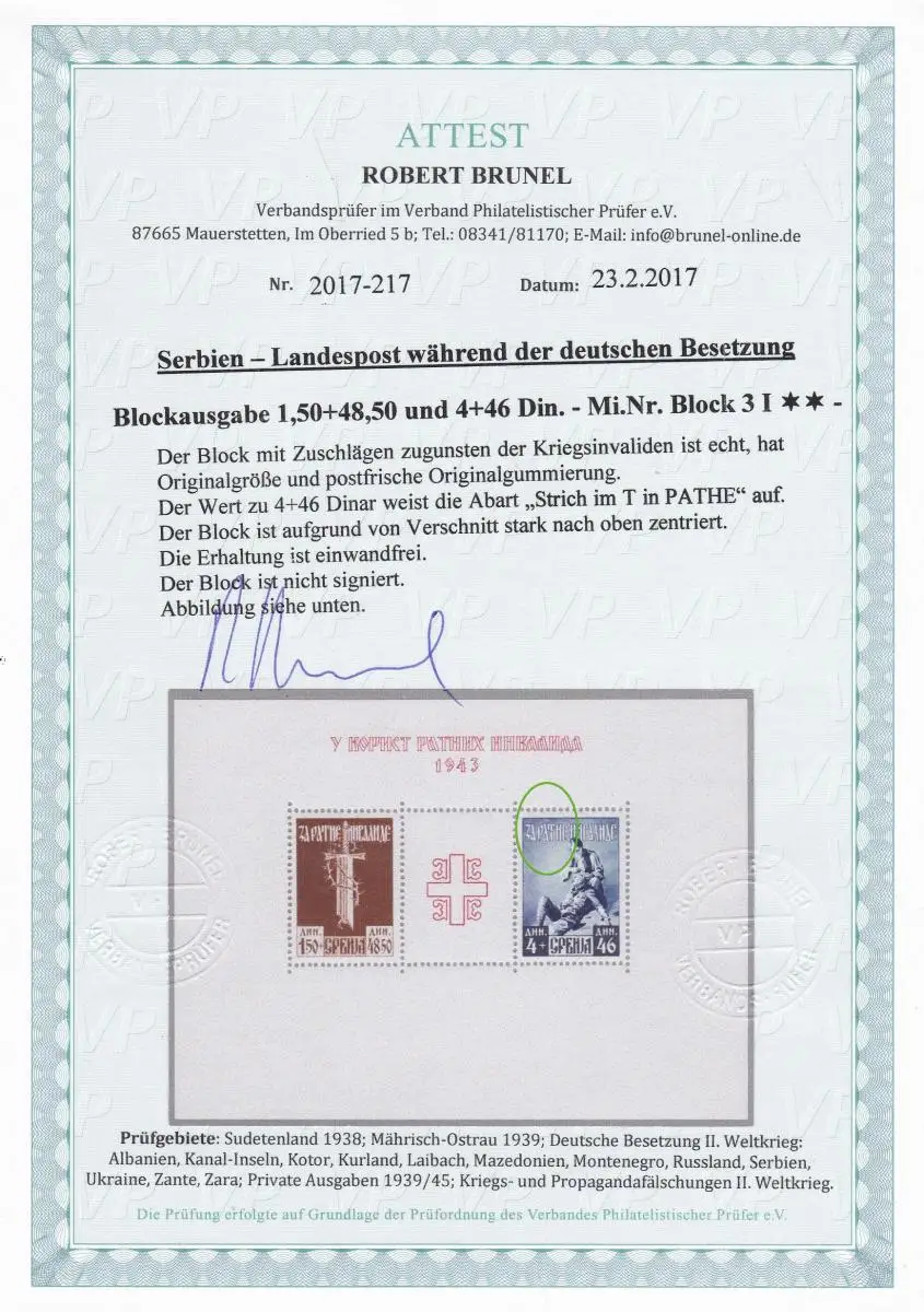 Serbien: MiNr. Block 3I, **, Abart und Verschnitt