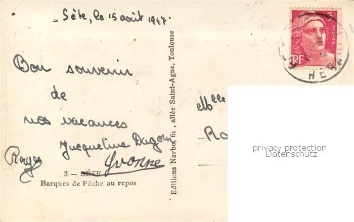 Sete_Cette Barques de Peche au repos postalisch gelaufen 1947 Erhaltung siehe scans [WerneD78] WernPID7