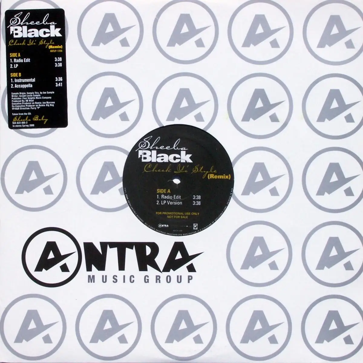 12" Maxi Sheeba Black - Check Yo' Style Remix, Einheitscover der Plattenfirma mit Info-Aufkleber, Promo, Zustand Platte VG+ Hülle VG+; Made in United States 2000 Antra Records ANTLP-1206, Tracks RMX, Radio Edit 3:38, RMX, LP 3:38, RMX, Instr. 3:36, RMX, Accappella 3:41