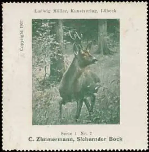 Jagd-Serie 1 Nr. 7, Größe/Zustand: 7x7 , fleckig, Original alte Reklamemarke die seinerzeit für die Werbung benutzt wurde