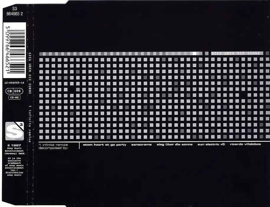 CD Single Sieg Über Die Sonne - 1 Infinite Remixes, Zustand CD VG+ Hülle M-; Made in Germany 1997 Dancepool 664665 2, Tracks Pre-Human Body [Atom Heart St Go Party RMX] 5:52, Mogul [Sensorama RMX] 6:20, Mode [Sieg Über Die Sonne RMX] 11:11, Mogul [Sun Electric +5V RMX] 5:26, Mogul [Ricardo Villalobos RMX] 13:41, Mogul [Sun Electric -5V RMX] 5:47