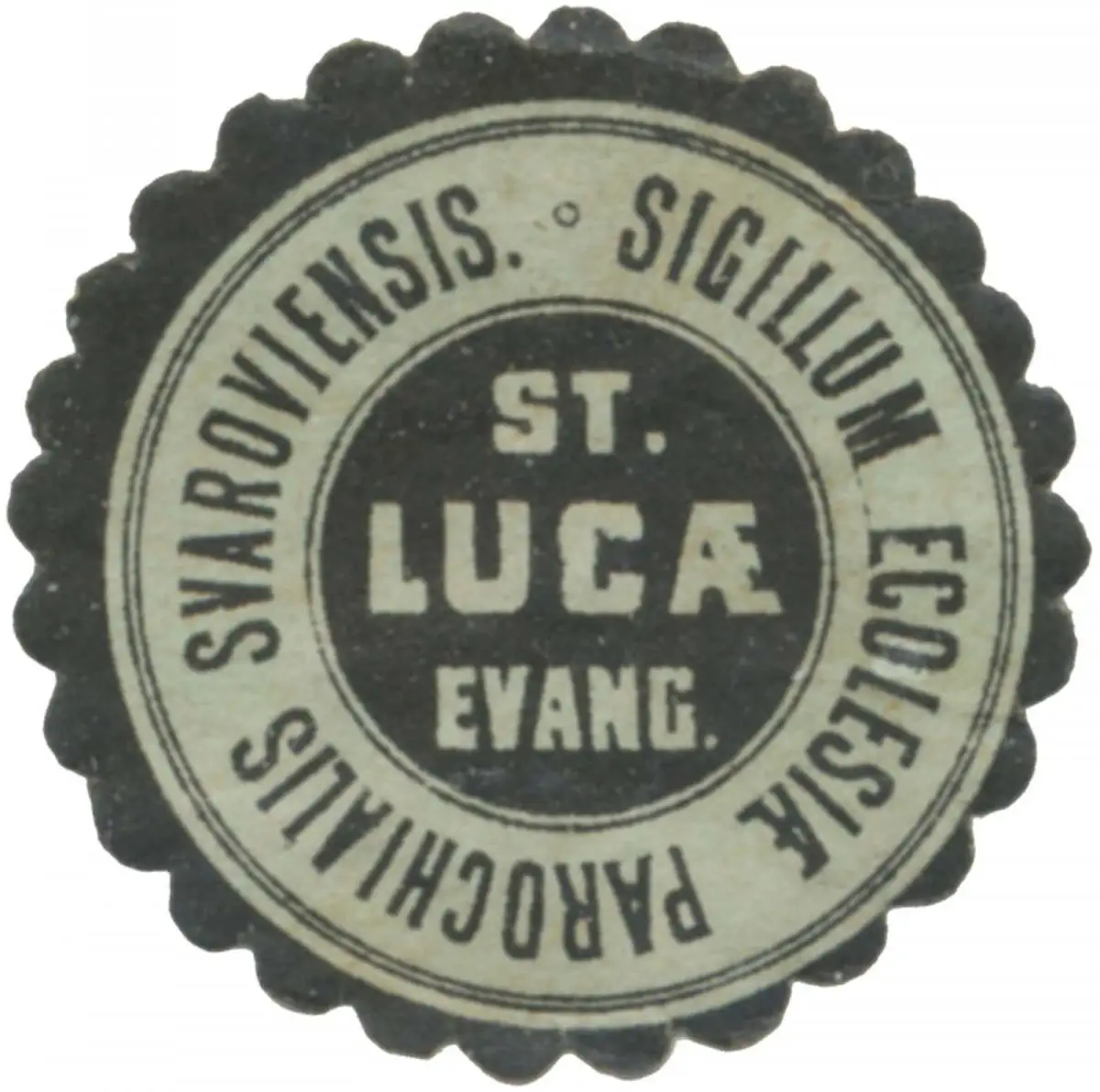 evangelische St. Lucae, Kirche, Größe/Zustand: 3 , leicht beschädigt, Original Verschluss-Siegelmarke aus Papier welche früher von Behörden, Firmen etc. zum Versiegeln der Briefe benutzt wurden