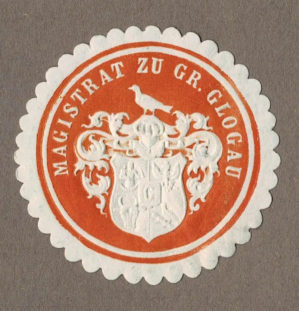Siegelmarke Schlesien: MAGISTRAT ZU GR. GLOGAU (Głogów), orange