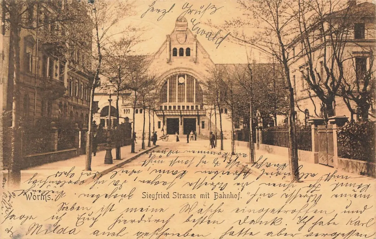 Siegfried Strasse mit Bahnhof in Worms Rheinland-Pfalz Postkarte AK 1906