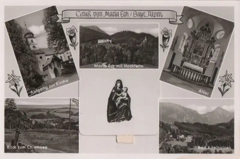 Siegsdorf, Kloster Maria Eck - Rucksackkarte mit 10 weiteren Bildchen - 1963