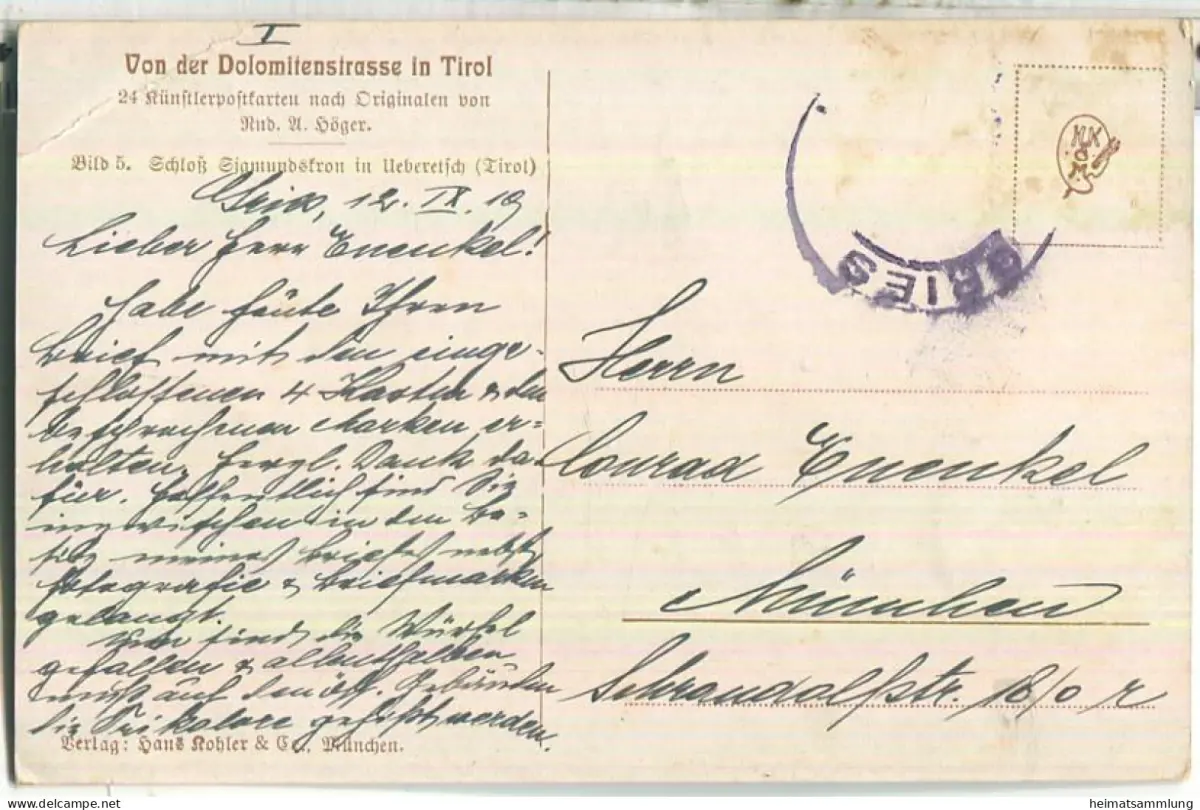 Sigmundskron in Ueberetsch - Künstlerkarte signiert R. A. Höger - Verlag Hans Kohler & Co. München - Eckknick oben links - Marke entfernt (E88839) gel. 1919