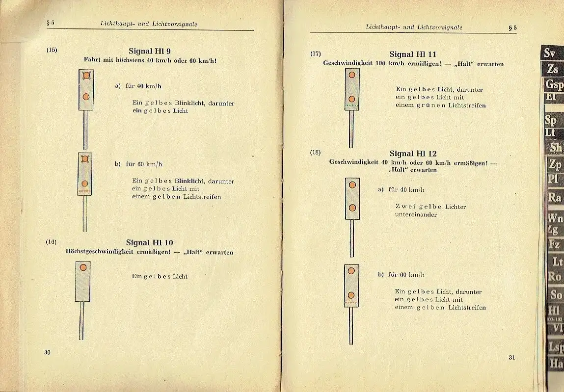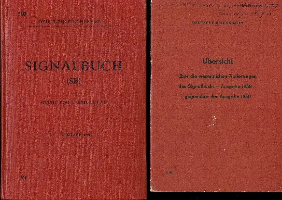 guter Zustand, geringe Gebrauchs- und Alterungsspuren: Vorsatzseite mit Bahnhofsstempel und 3 Zeilen privater Adressen - Papier teils etwas vergilbt, aber Seiten sauber und ordentlich, eine Seite an der oberen Ecke durchsichtig geklebt - Beilage: auf dem Deckel und in der Rückseite mit alter Besitzeradresse - Deckel teils etwas zerkratzt -Umschlag und Seiten teils etwas eselsohrig - Papier etwas vergilbt, aber Seiten sauber und ordentlich, Allgemeine Bestimmungen für die Signale - Formhauptsignale - Formvorsignale - Lichthaupt- und Lichtvorsignale - Lichtsignale der Berliner S-Bahn - Zusatzsignale an Hauptsignalen - Gleissperrsignal - Zusätzliche Signale bei elektrischer Zugförderung - Signale für Schiebelokomotiven und Sperrfahrten - Langsamfahrsignale - Schutzhaltsignale - Signale für das Zugpersonal - Aufforderungssignale zum Pfeifen und Läuten - Signale für den Rangierdienst - Weichensignale - Signale an Zügen und Nebenfahrzeugen - Signale an einzelnen Fahrzeugen - Läutesignale - Rottenwarnsignale - Sonstige Signale - Abweichende Signale - Anlagen - Beilage: Übersicht über die wesentlichen Änderungen des Signalbuchs gegenüber der Ausgabe 1950 - Ausgabe 1958, Leinen, ca. 15 x 21, 136 Seiten mit zahlreichen Bildern und 1 Beilage: Übersicht über die wesentlichen Änderungen des Signalbuchs - Ausgabe 1958 - gegenüber der Ausgabe 1950 (24 Seiten)