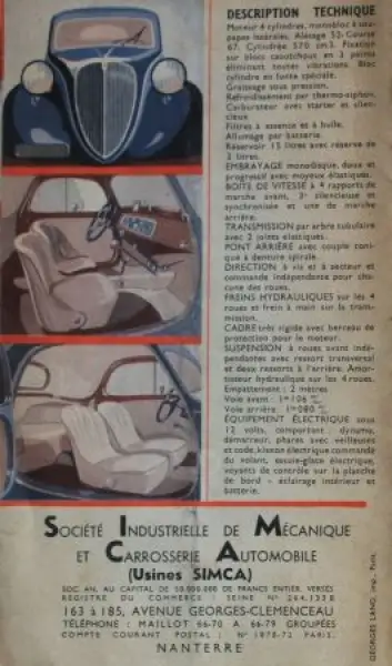 Simca Fiat Cinq Modellprogramm 1938 "Attendent une solution!" Automobilprospekt (3018)