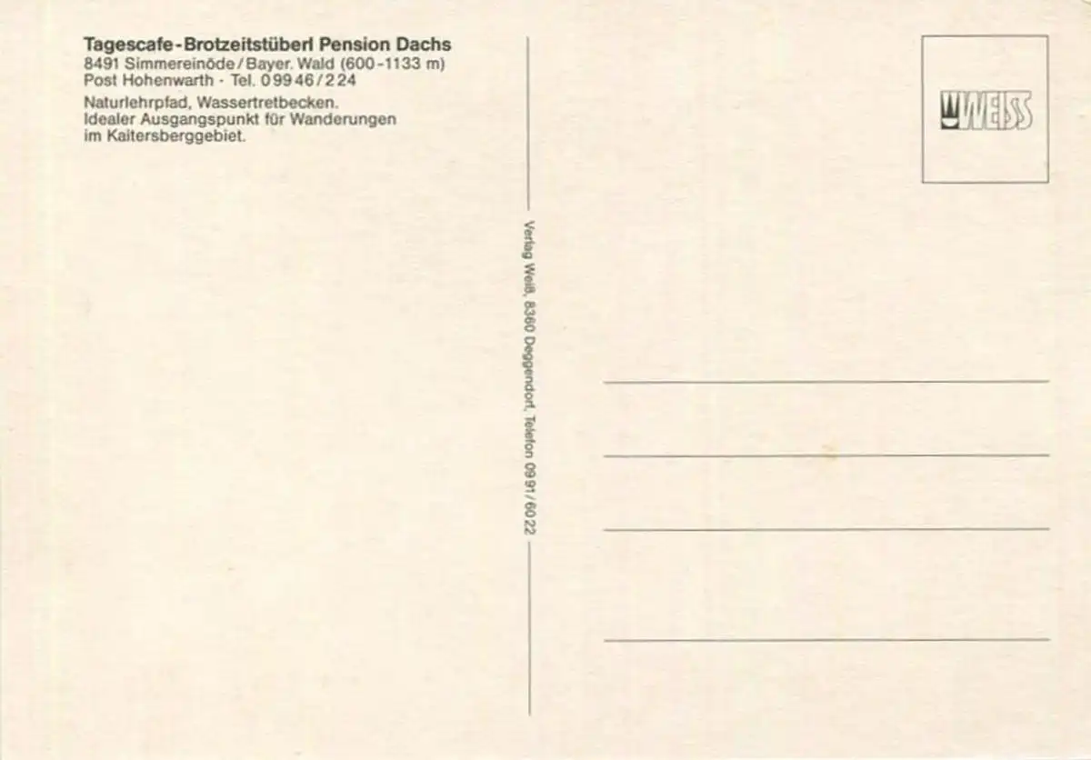 Simmereinöd - Hohenwarth - Cafe Pension Dachs - AK Grossformat - Verlag Weiß Deggendorf