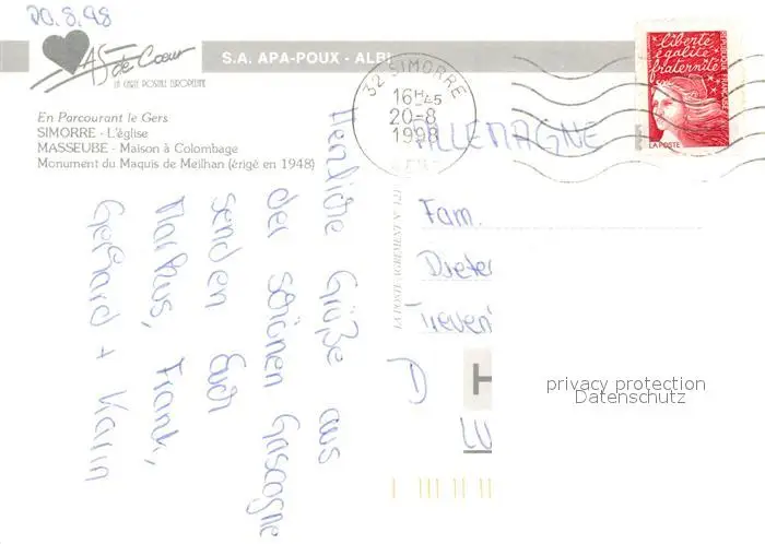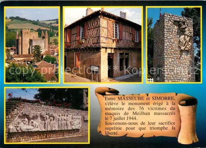 Simorre Eglise Masseube Maison a Colombage Monument du Maquis de Meilhan Simorre postalisch gelaufen 1998 Erhaltung siehe scans [WerneD78] WernPID7
