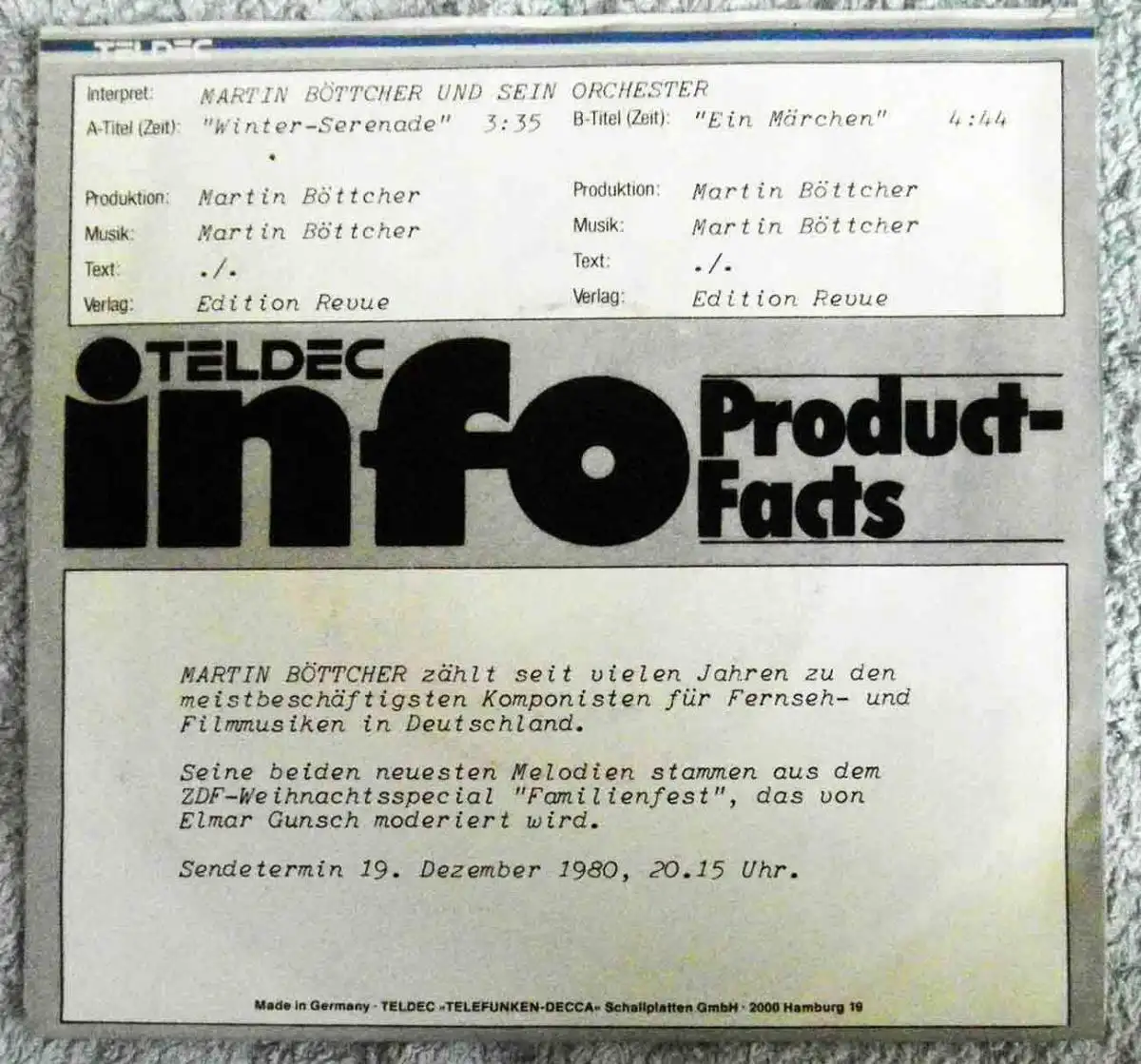 Single Martin Böttcher: Winter Serenade (Telefunken 612956 AC) D 1980 PR Info