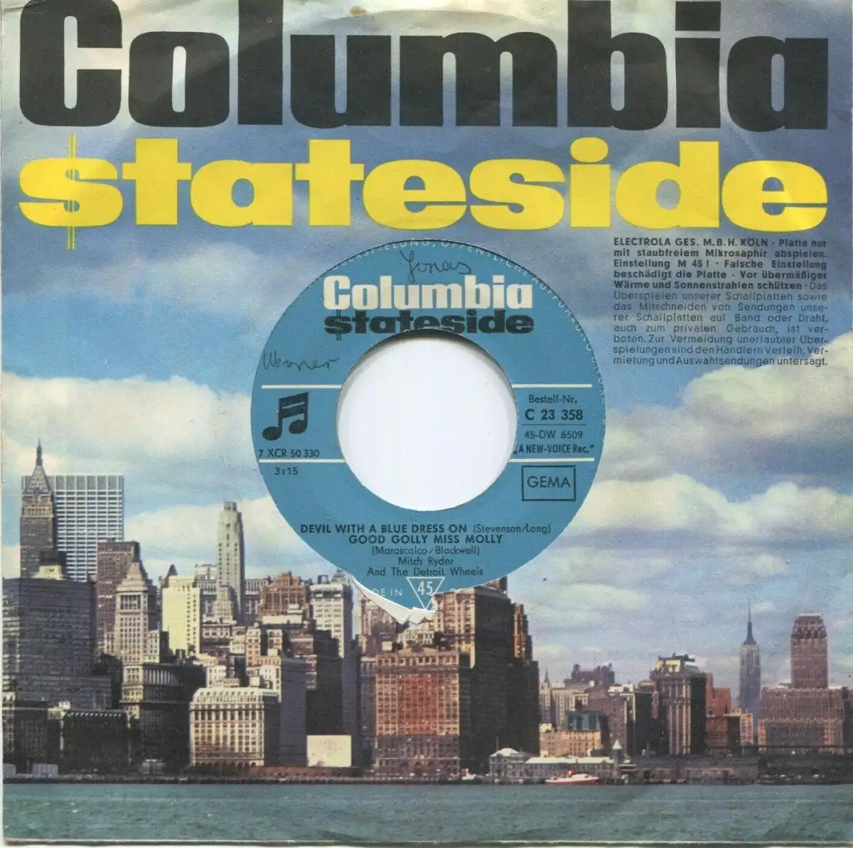 Originalsingle, dt. Pressung, Columbia Records, im Firmenlochcover. wol