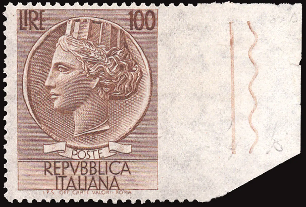 MNH - Vollgummi - - Syrakus Lire 100 Nr. 785/Ifa Verzahnung 13,1/4 ungezahnt rechts b. von f. integral - Kat. euro 600 Cod.639/182