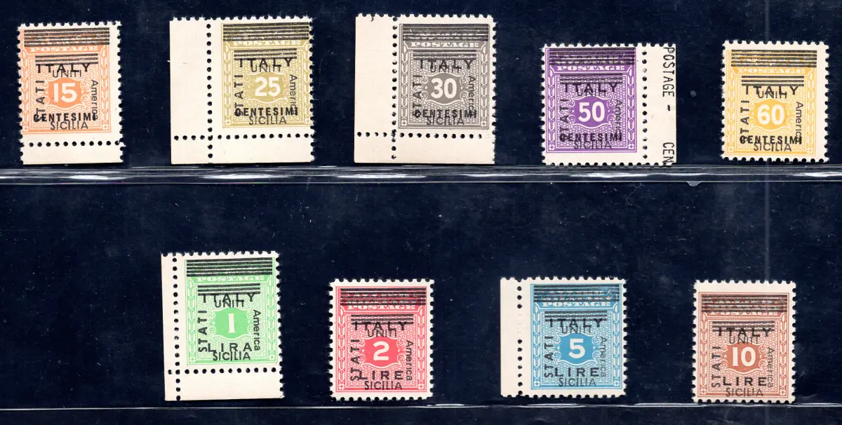 Vollgummi MNH - Sicilia Occ. Alliierte - Die komplette Serie mit privatem Aufdruck politischer Propaganda VEREINIGTE STAATEN Amerika SIZILIEN - diese Privatausgabe wurde von einem damals bekannten Händler für den amerikanischen Markt realisiert, kürzlich vom Sammlerverband AMGOT AMG Courier gemeldet - Interessant für Fachmann Cod. 971/16