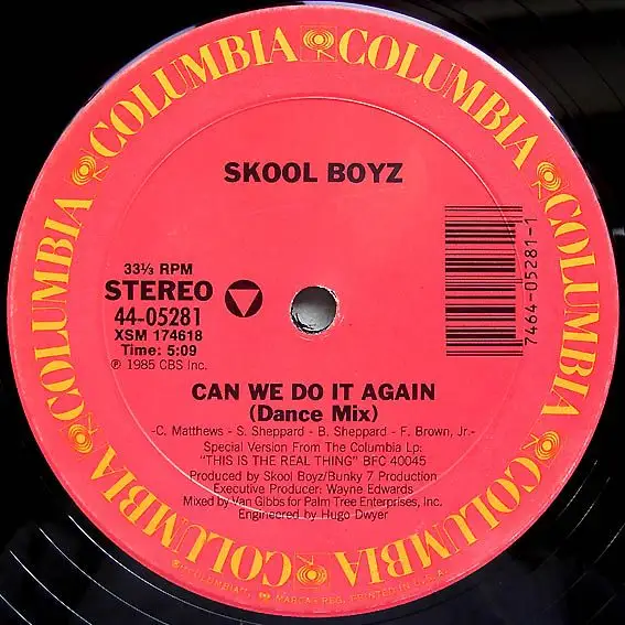 12" Maxi Skool Boyz - Can We Do It Again, neutrales Cover; Label beschriftet, Zustand Platte VG+ Hülle VG; Made in United States 1985 Columbia 44-05281, Tracks Dance Mix 5:09, Radio Mix 3:14, Dub Mix 6:14