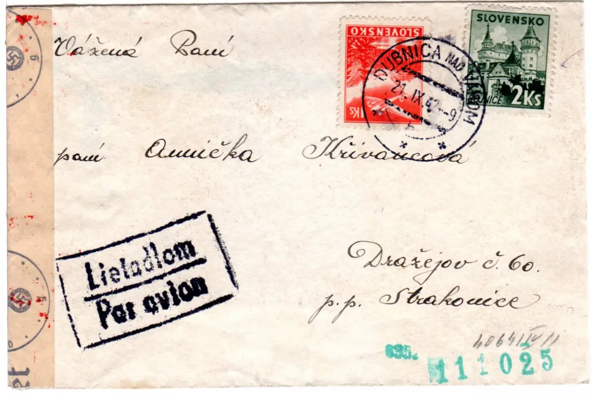 Slowakei 1942, 1+2 Ks. auf Luftpost Zensur Brief v. Dubnica Nad Vahom