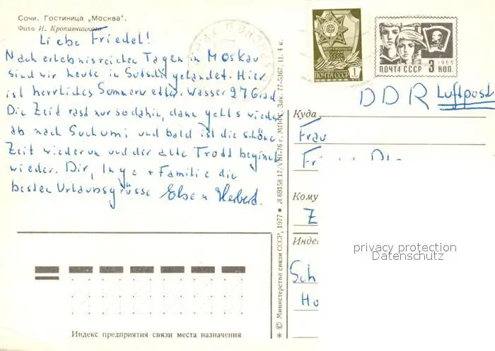 Sochi_Sotschi Hotel Moskva postalisch nicht gelaufen nach 1965 Erhaltung siehe scans [DarjaD84] DarjID84