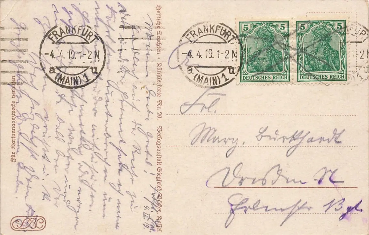Rückseite: gelaufen 1919
