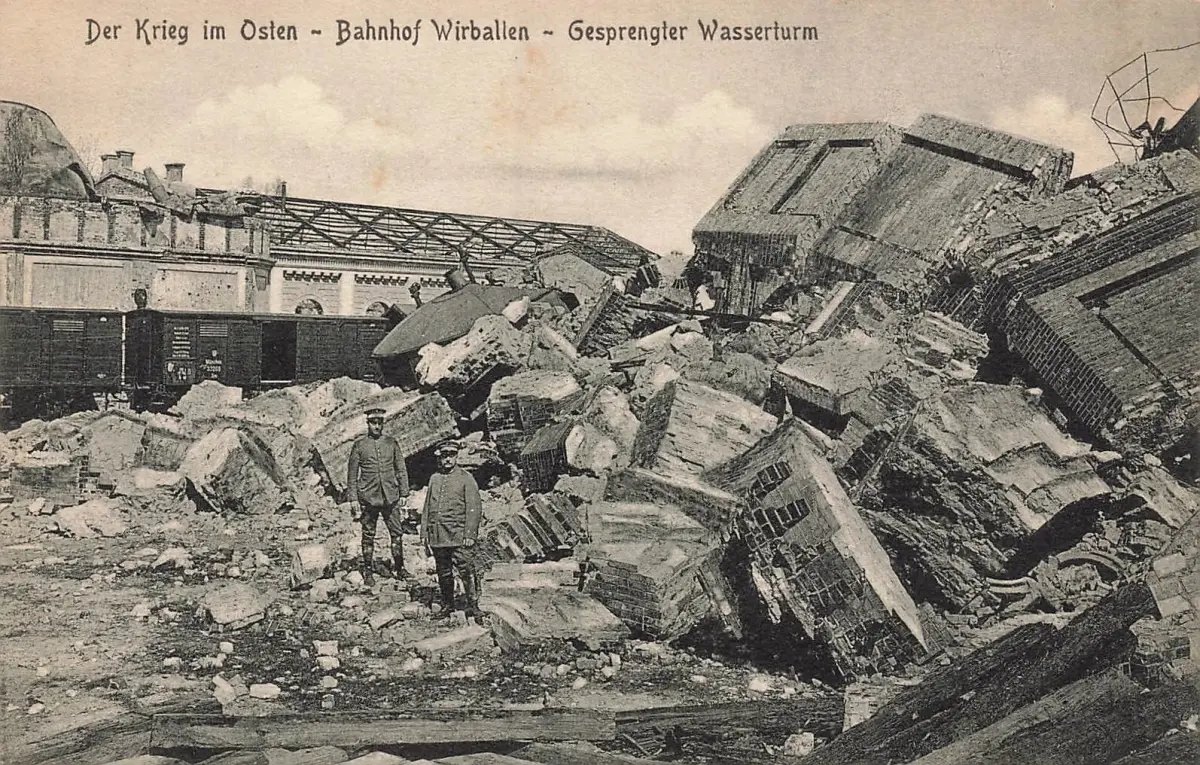 Soldaten am Gesprengten Wasserturm, Bahnhof Wirballen Virbalis Litauen AK 1917