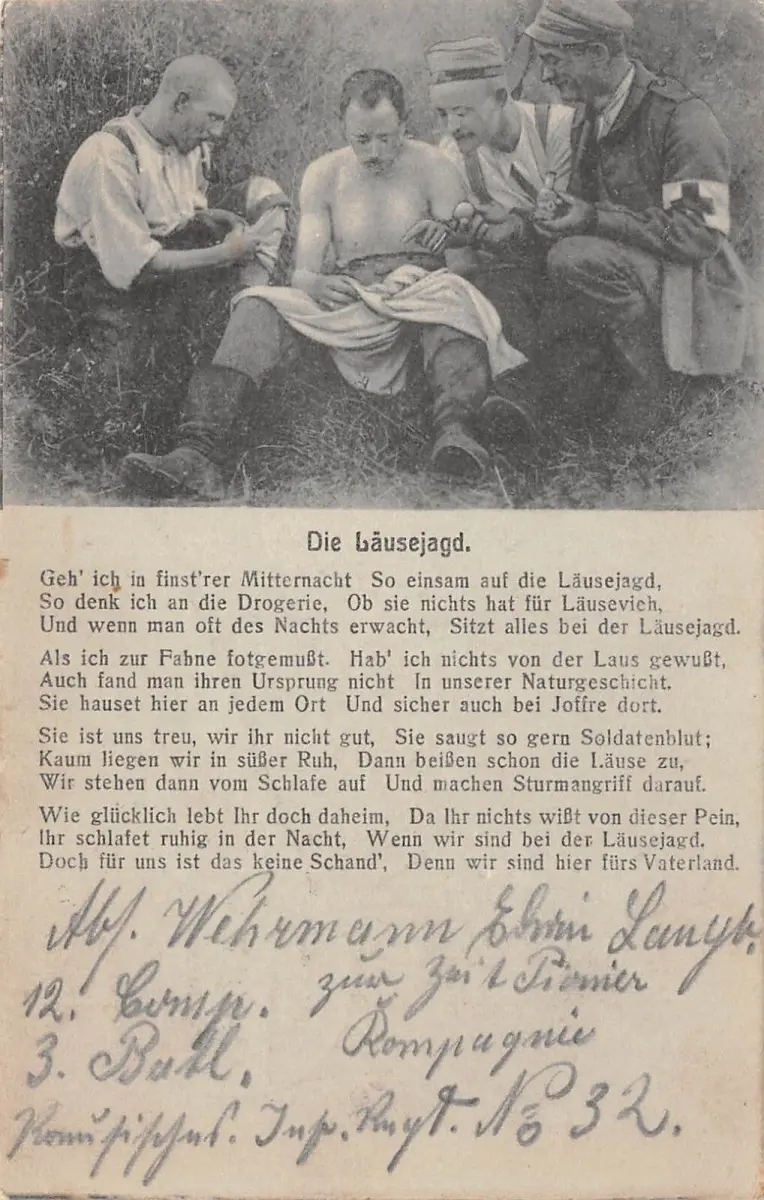 Soldaten bei Läusejagd Patriotika Postkarte AK 1917