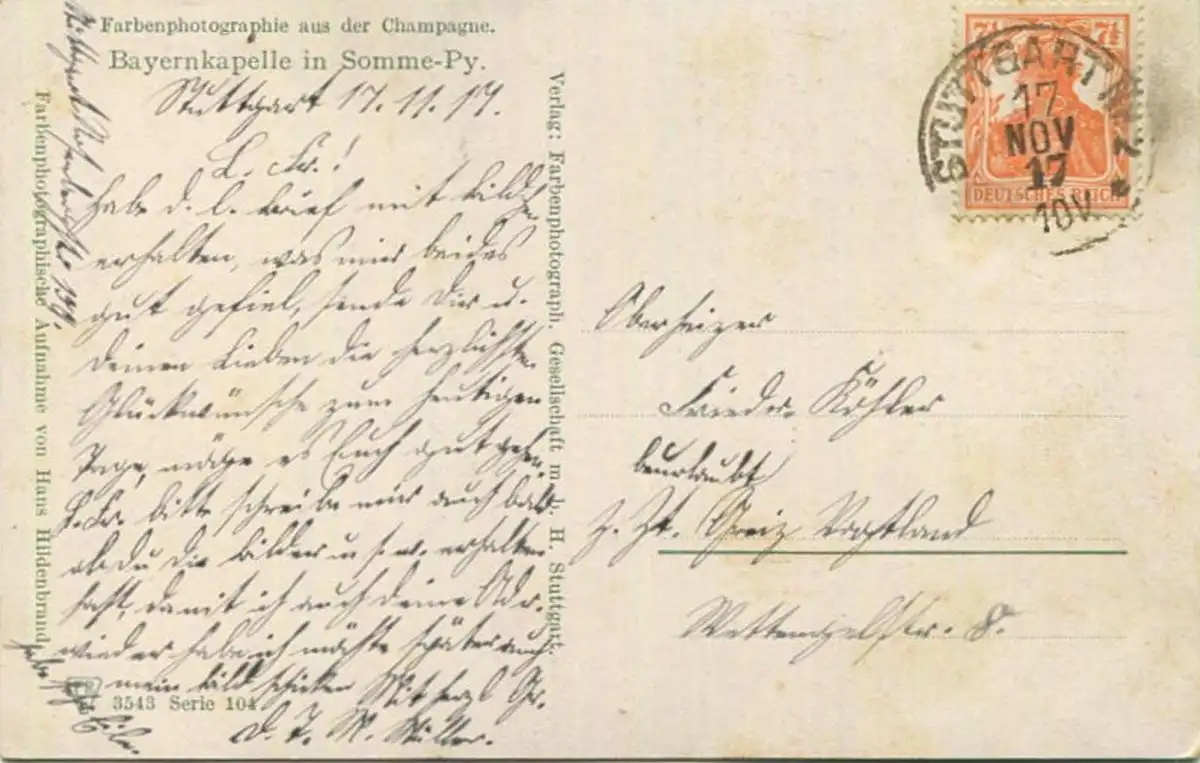 Somme-Py - Bayernkapelle - Verlag Farbenphotograph. Gesellschaft Stuttgart gel. 1917