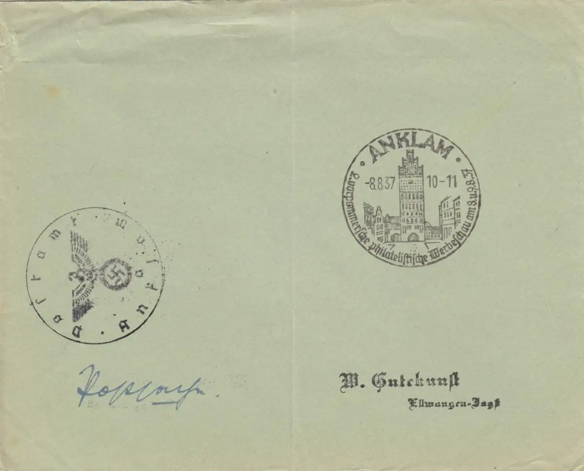 Sonderstempel Anklam 1937, Postsache