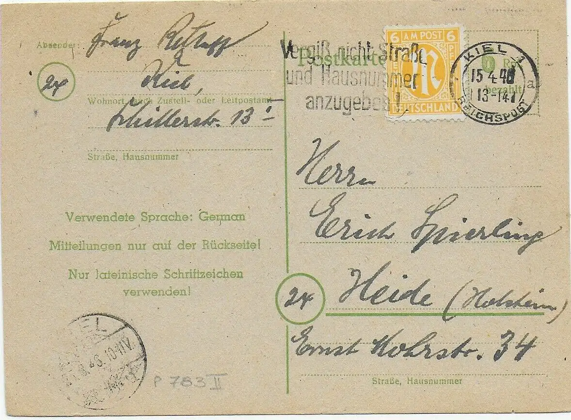 Brief / Karte ist vollständig erhalten, Scan schneidet ab und zu je 1-2mm ab.