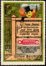 Diesen Stempel am Broschenhaken muß jeder Echte Sonnengoldschmuck eingeprägt haben, Größe/Zustand: 7x5 , guter Zustand, Original alte Reklamemarke die seinerzeit für die Werbung benutzt wurde