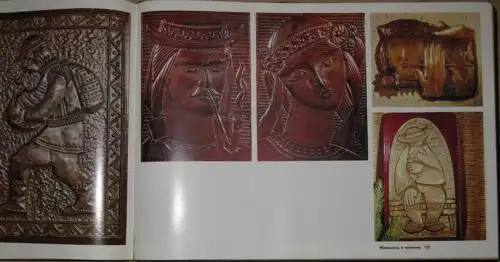 sehr guter Zustand, geringe Gebrauchs- und Alterungsspuren - Einband teils leicht verschmutzt - Seiten sauber und ordentlich, in russischer, englischer, französischer und deutscher Sprache "Wenn ein Mädchen in der guten alten Zeit von seinem Geliebten, dem eine weite Reise bevorstand, Abschied nahm, verehrte sie ihm ein handgewebtes besticktes Ziertuch, ,,Chustotschka", die Frau schenkte bei einem solchen Anlaß ihrem Mann einen prallen Tabakbeutel, wahrend die Mutter einen liebevoll gestickten ,,Ruschnik" (Handtuch) dem Sohn in den Rucksack steckte. Das ukrainische Souvenir von heute hat das Beste davon übernommen, was von Laien und Fachleuten auf dem Gebiet der angewandten Kunst geschaffen wurde. Ukrainische Souvenirs sind in Hinblick auf Genre, Sujet und Werkstoff sehr verschieden und - was das Wichtigste ist - von einer außerordentlich großen künstlerischen Mannigfaltigkeit. Erzeugnisse dieser Art, die von der sowjetischen Außenhandelsorganisation ,,Novoexport" exportiert werden, offeriert unser Prospekt." - Teppiche, Dekorstoffe, Stickereien - Holzsouvenirs - Keramik, Glas und Porzellan - Malerei und Prägearbeit, Kunststoff, 126 Seiten mit über 200 Bildern