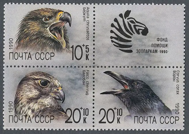 kompletter postfrischer Satz mit 3 Werten als 4er Block mit Zierfeld,