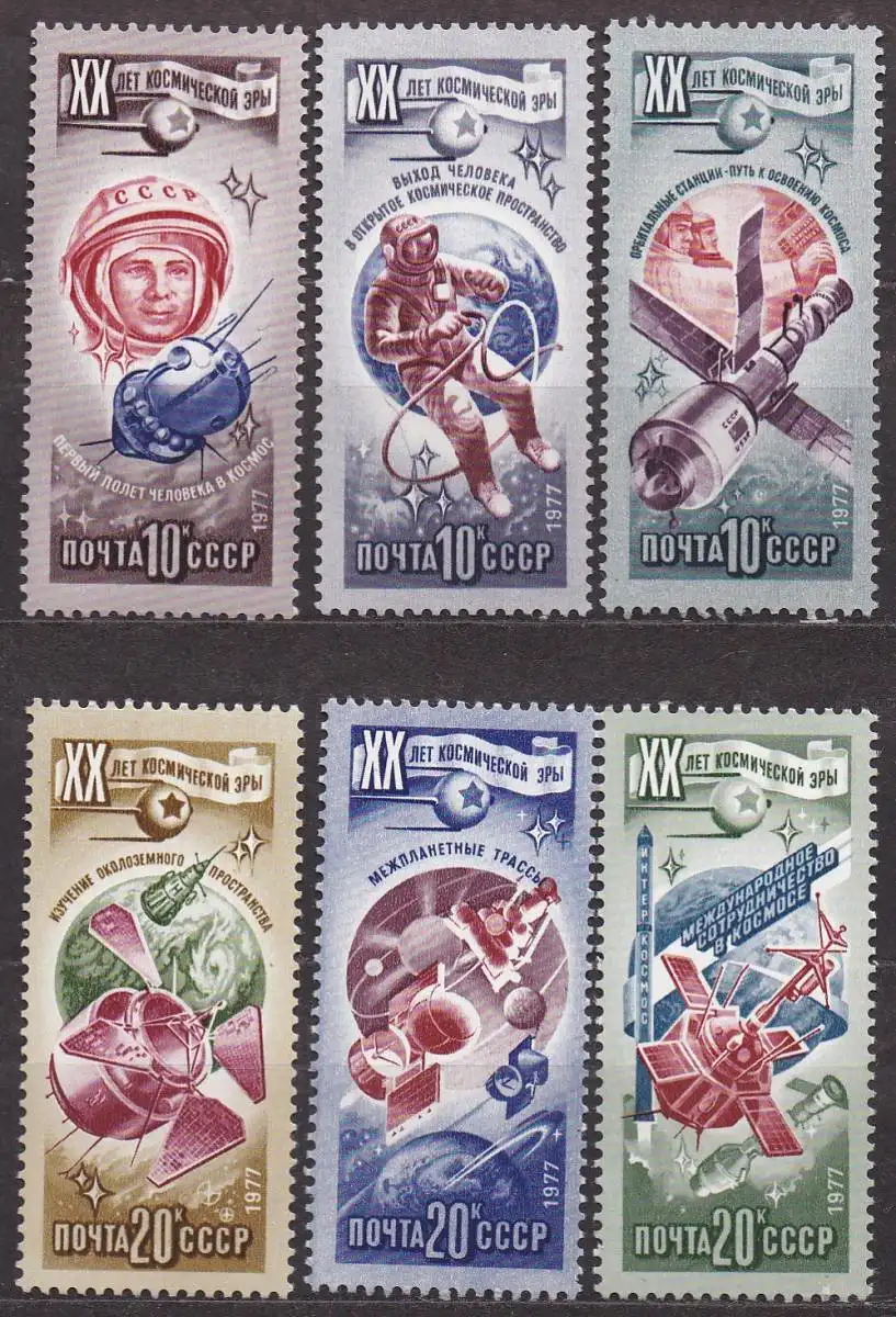 Sowjetunion, Mi-Nr. 4648 - 4653 **, kompl., 20 Jahre Kosmische Ära