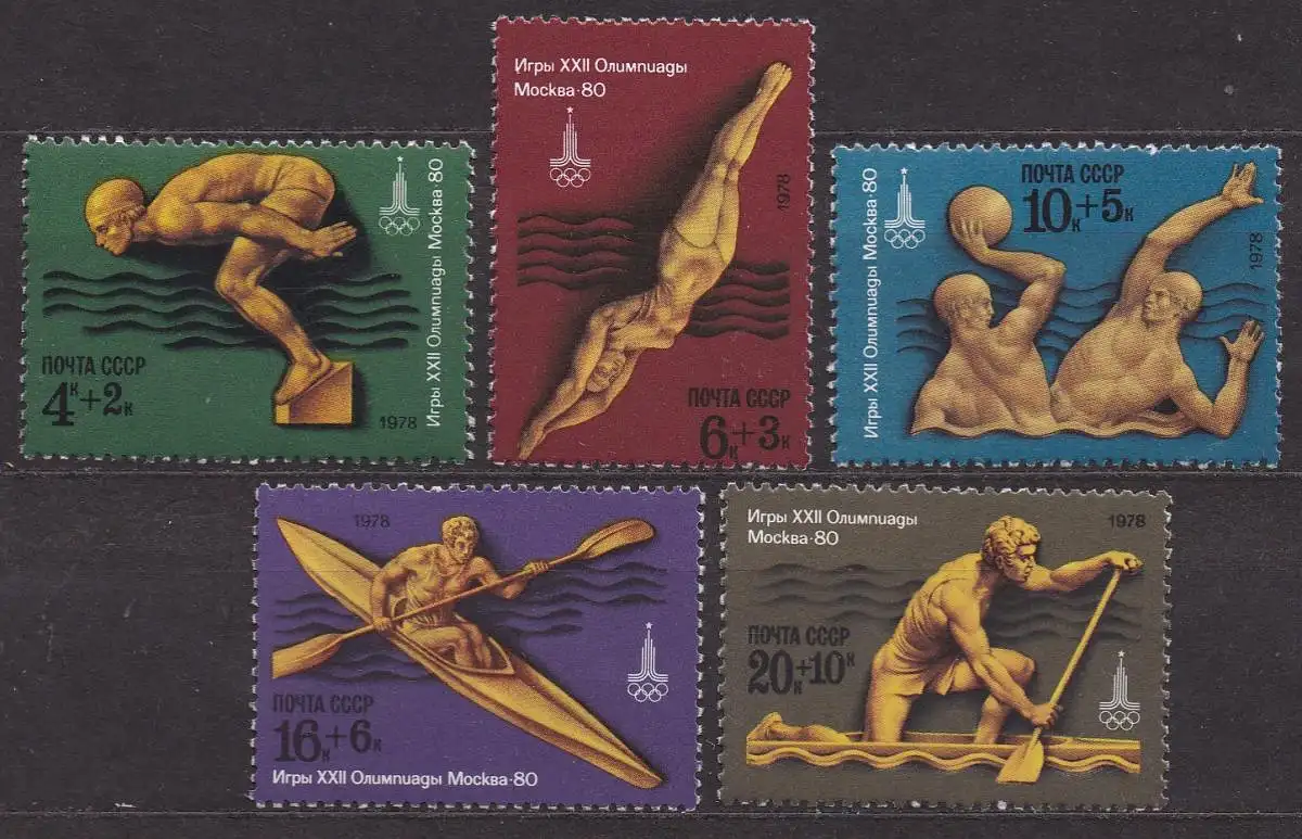 Sowjetunion, Mi-Nr. 4707 - 4711 **, kompl., Olympische Sommerspiele Moskau 1980: Wassersport