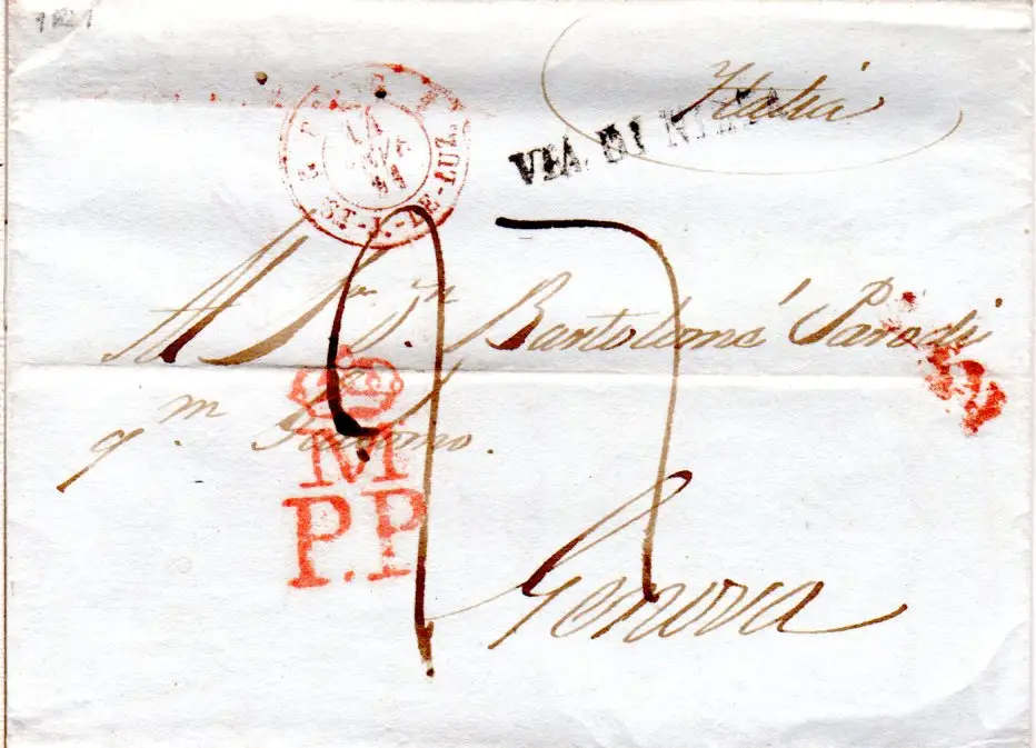 Spanien 1841, Brief v. Madrid via Frankreich u. Schiffspost n. Sardinien Italien