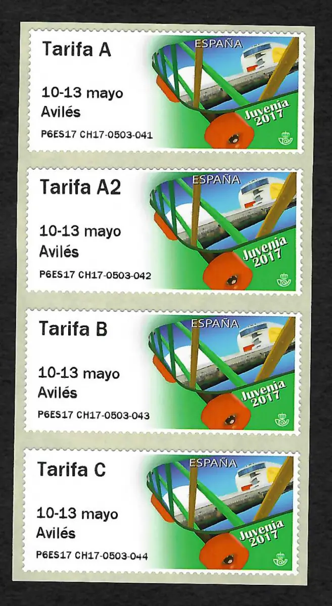 Spanien 2017: Briefmarkenausstellung JUVENIA, 4x selbstklebende Marken, **