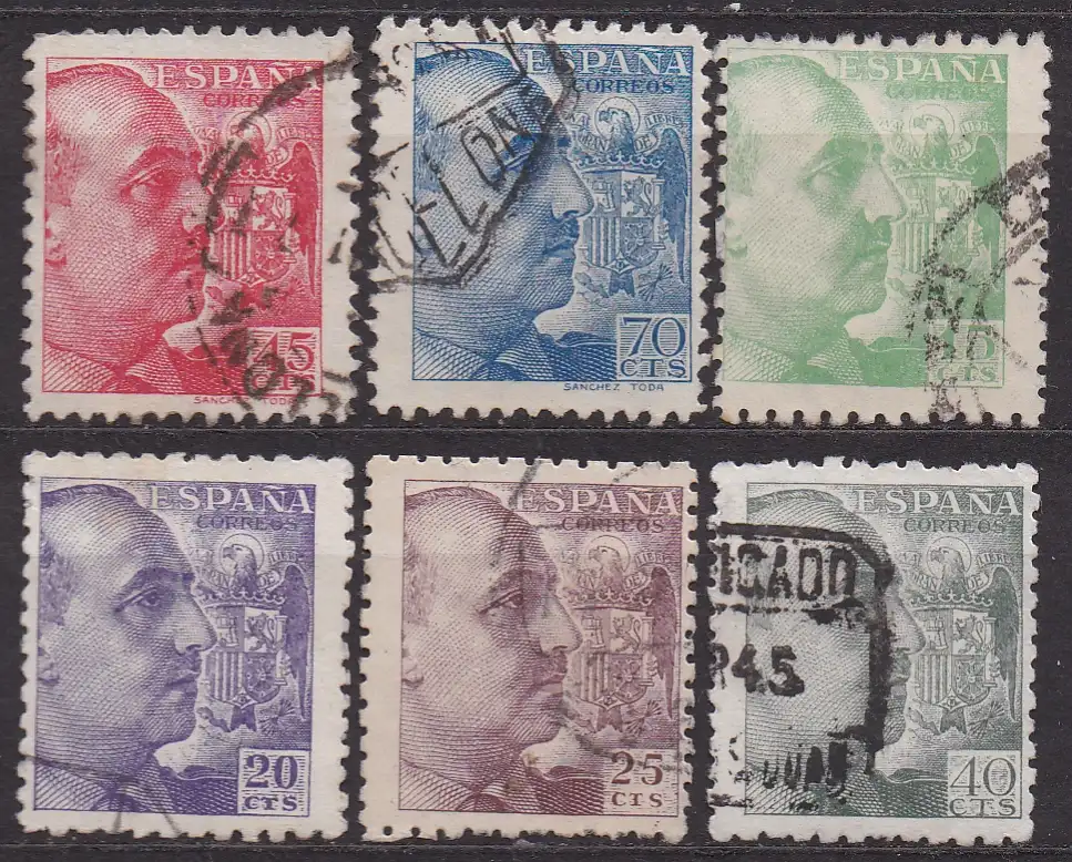 Spanien, Mi-Nr. 832, 835, 843 A, 844 A, 845 A + 847 A gest., General Franco