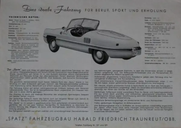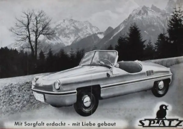 Spatz Fahrzeugbau Traunreut Modellprogramm 1956 "Mit Sorgfalt erdacht" Automobilprospekt (0652)