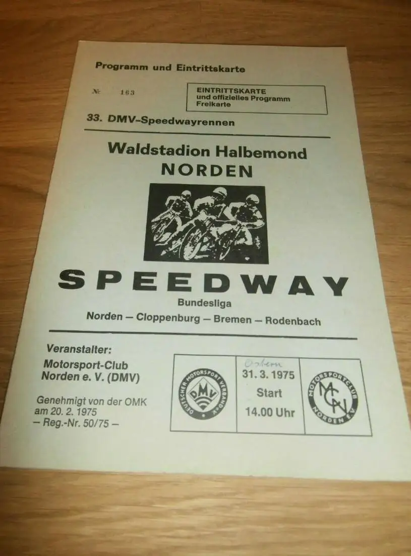 Speedway , Norden 31.03.1975 , Rennprogramm , Programmheft , program !!!