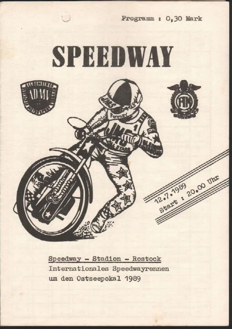 Speedway Rostock , 12.7.1989 , Ostseepokal , Programmheft , Rennprogramm !!!