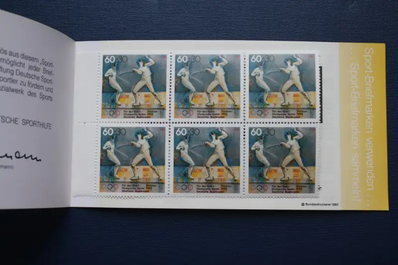 Sporthilfe, Sport Markenheftchen, Markenheft Deutsche Sporthilfe 1992