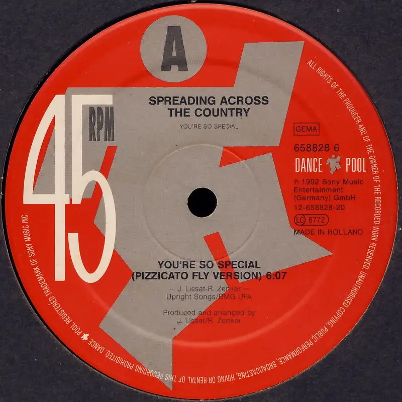 12" Maxi Spreading Across The Country - You're So Special, Einheitscover der Plattenfirma, Zustand Platte VG Hülle VG+; Made in Germany 1992 Dance Pool 658828 6, Tracks Pizzicato Fly Vers. 6:07, Tribal House Mix 4:36, Instr. Mix 6:07