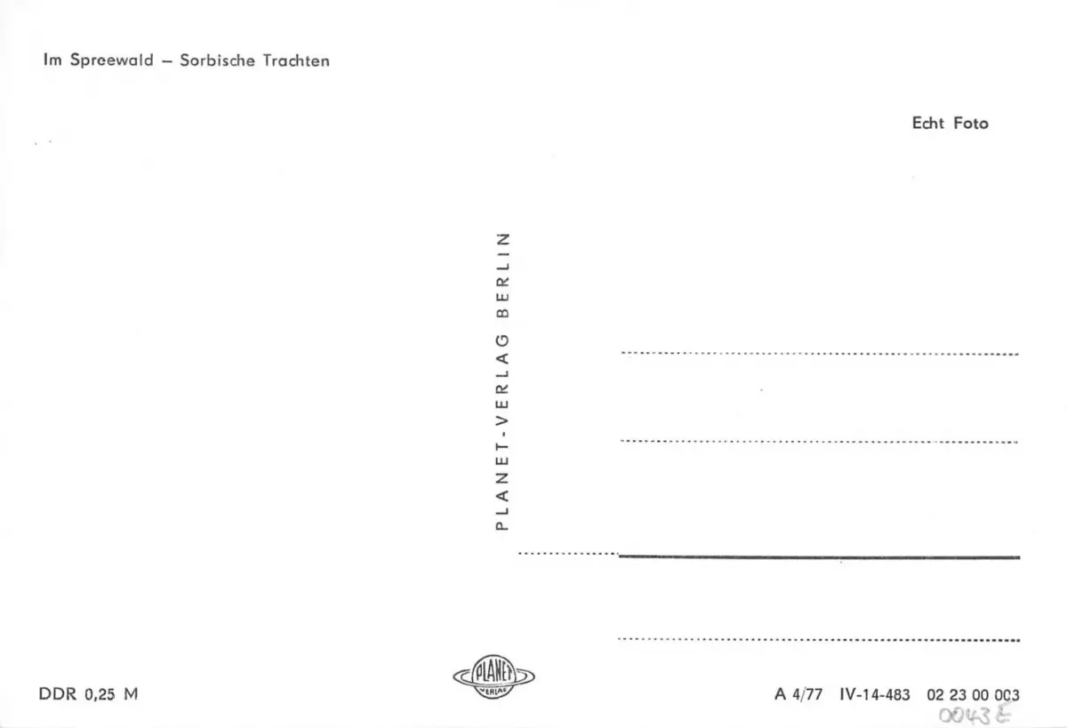 Spreewald Sorbische Trachten ngl 182.318