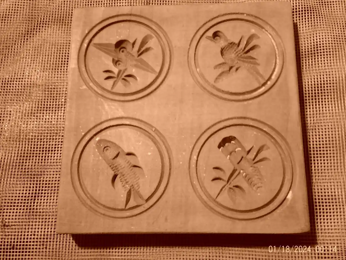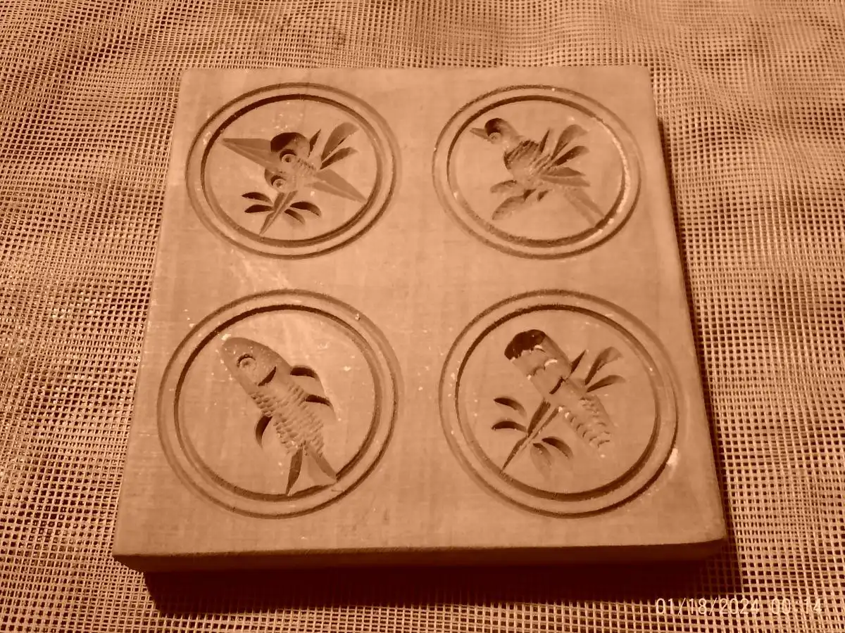 Springerle Modell 4 Motive : um 1880 besonders seltene Motivwahl Kirschbaum 9x 9,5x 1,4 cm Provenienz Bäckerei Gauss in Bretten