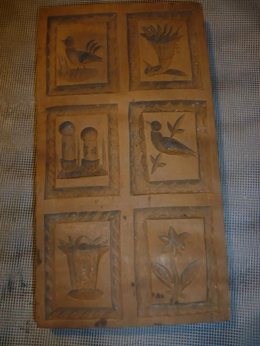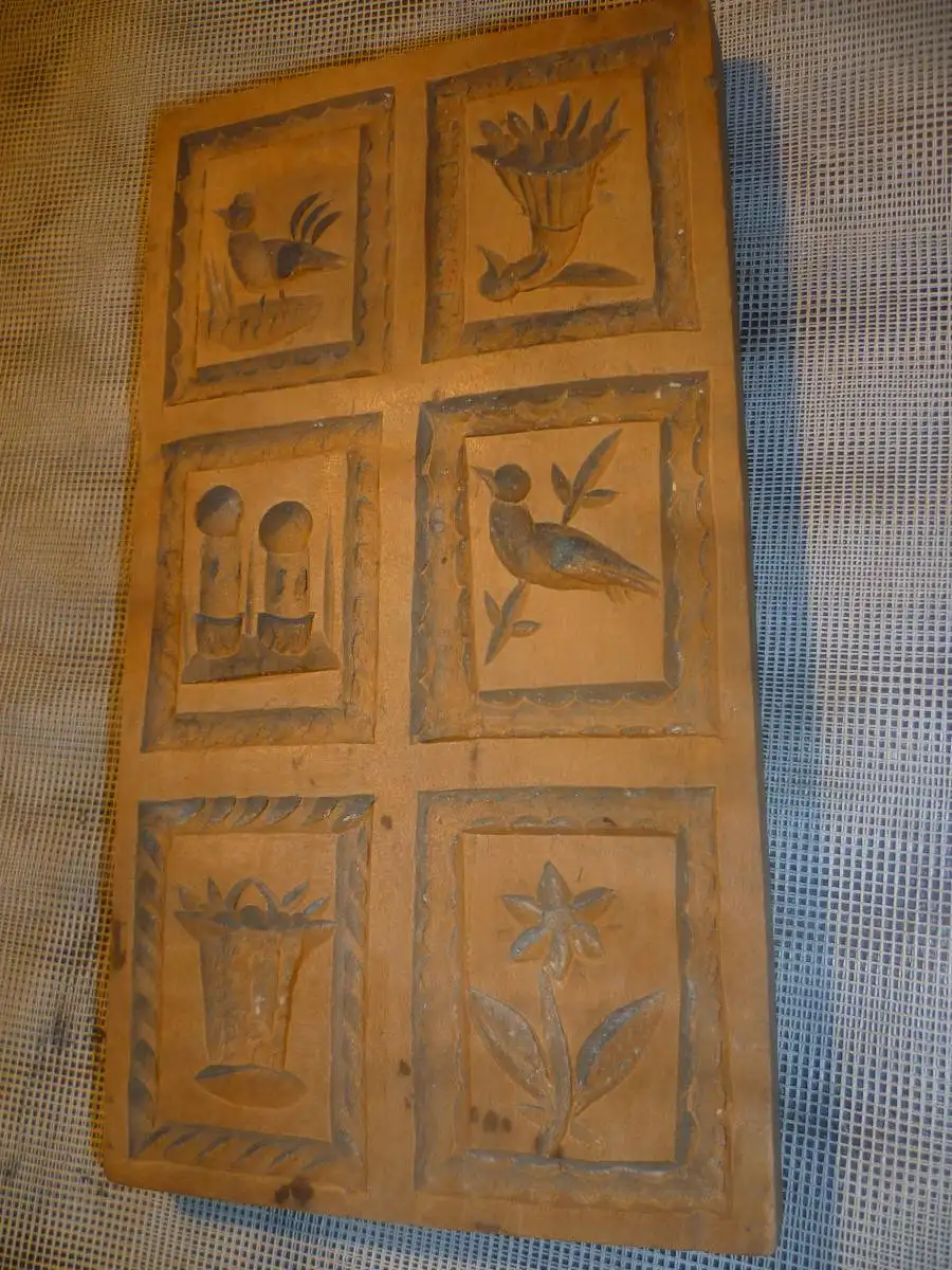 Springerle Volkskunde aus Baden Württemberg 6 seltene Motive; .. fein geschnitzte rechteckig um 1870 : Provenienz Bäckerei Gauss in Bretten