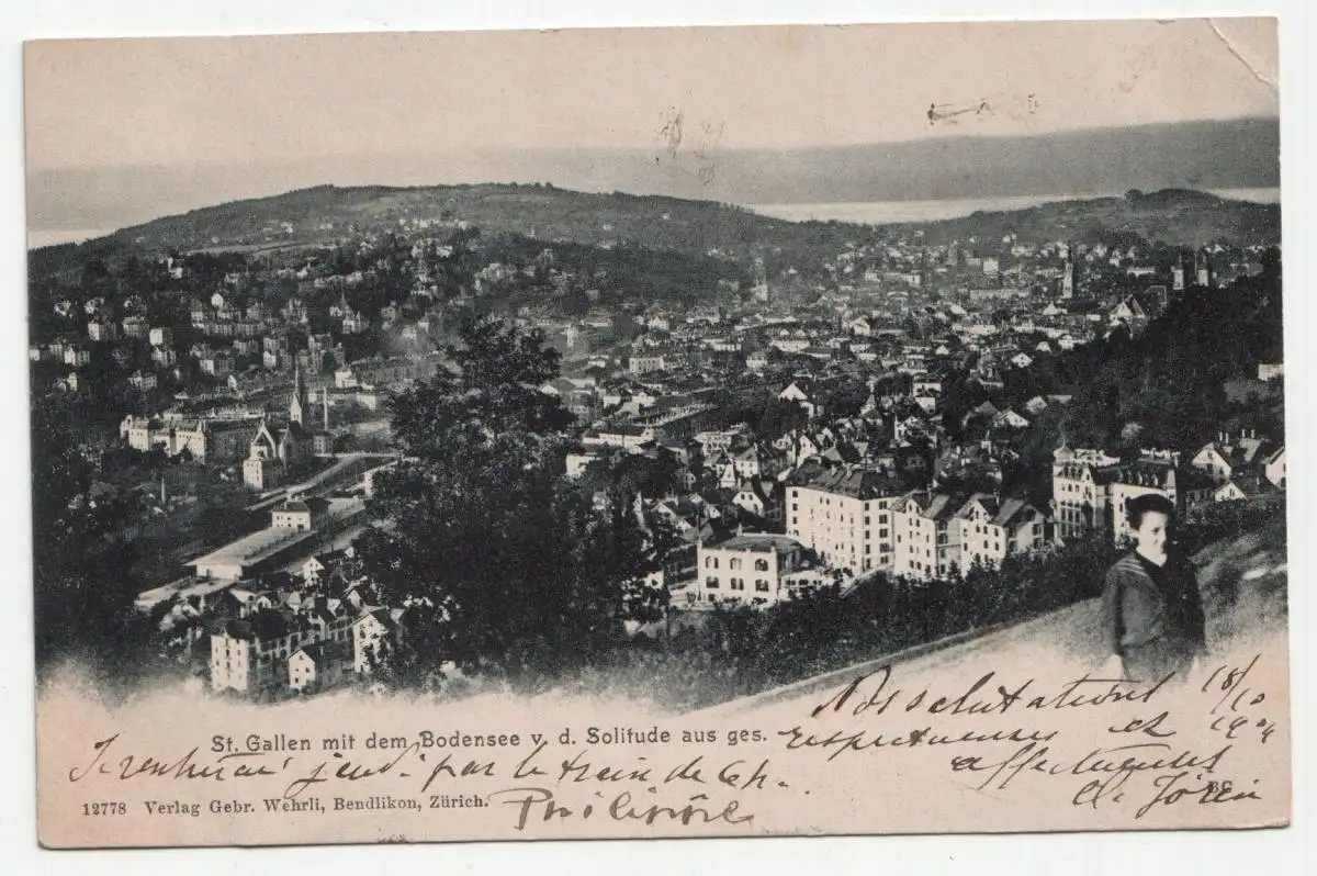 St. Gallen mit dem Bodensee v. d. Solitude aus ges. jahr 1904