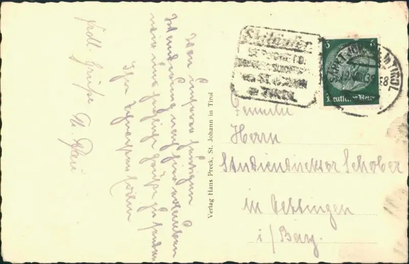 St. Johann in Tirol Panorama-Ansicht, Blick auf Kaisergebirge 1939