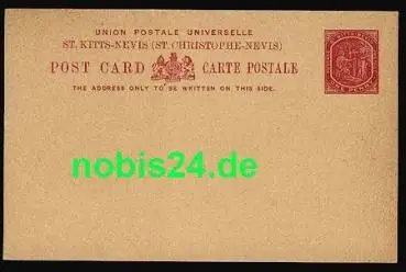 St. Kitts Nevis (St. Christophe-Nevis) Ganzsache one Penny, *ca. 1900