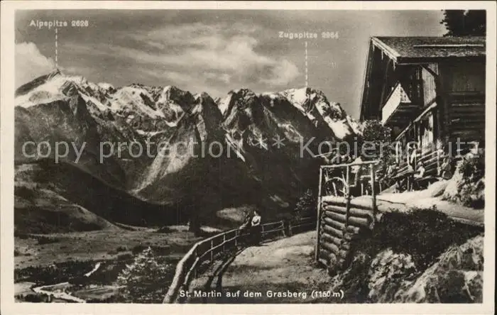 St Martin Grasberg Alpspitze Waxenstein Zugspitze Garmisch-Partenkirchen postalisch nicht gelaufen 1921-1965 Erhaltung siehe scans Alte Ansichtskarte Postkarte AndrID76
